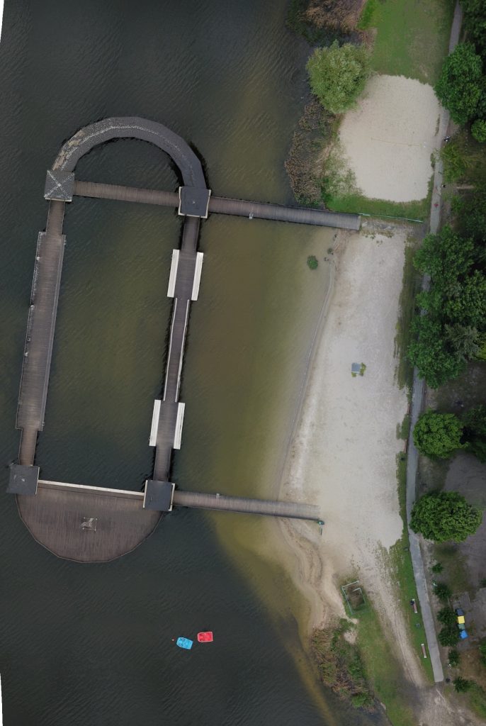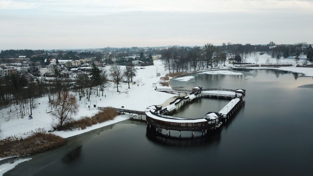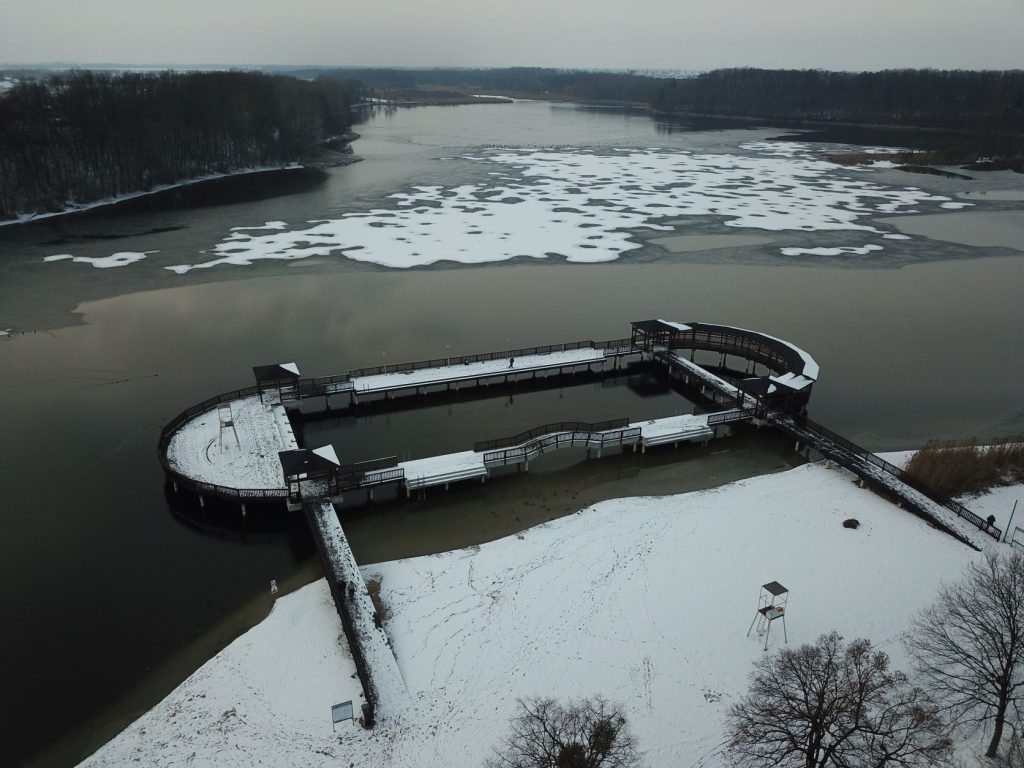 Wczoraj i dzisiaj (1-2.01.2022 r.) byłem na spacerze wokół jeziora, żeby zorientować się co mogło wpłynąć na tak fatalnie niski poziom wody. Moim pierwszym podejrzanym był jaz, który zamyka jezioro, i który miałem okazję już odwiedzić w zeszłym roku mapując przeszkody dla WWF (Barrier Tracker). Jak widać na zdjęciach, woda znajduje się poniżej progu jazu, więc nie było możliwe sztuczne obniżenie poziomu zwierciadła. Następnie poszedłem do ujścia Głównej, żeby sprawdzić czy woda wciąż dopływa do jeziora i mieć jakiś obraz sytuacji w górnej części zlewni – tutaj moje podejrzenia zostały szybko zweryfikowane przez rzeczywistość, bowiem wszystko wyglądało zupełnie normalnie, podobnie do tego co zastałem latem zeszłego roku. Także bobry, które zadomowiły się po drugiej stronie ulicy Kiszkowskiej, wypadły z listy podejrzanych. Chociaż nie wiem jakim cudem mogłyby aż tak ograniczyć dopływ…