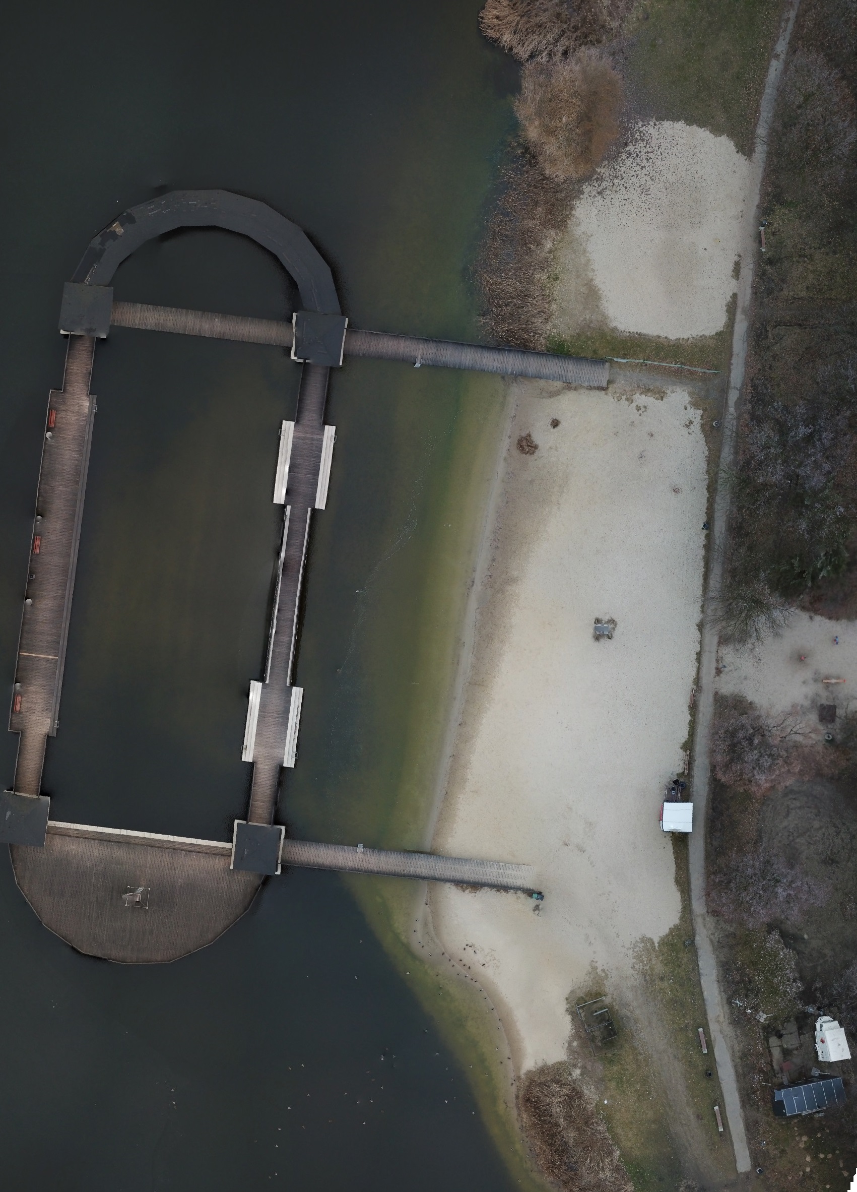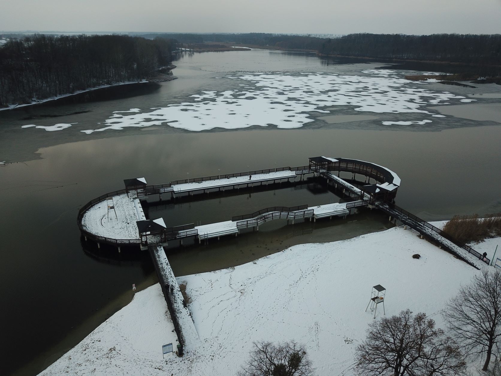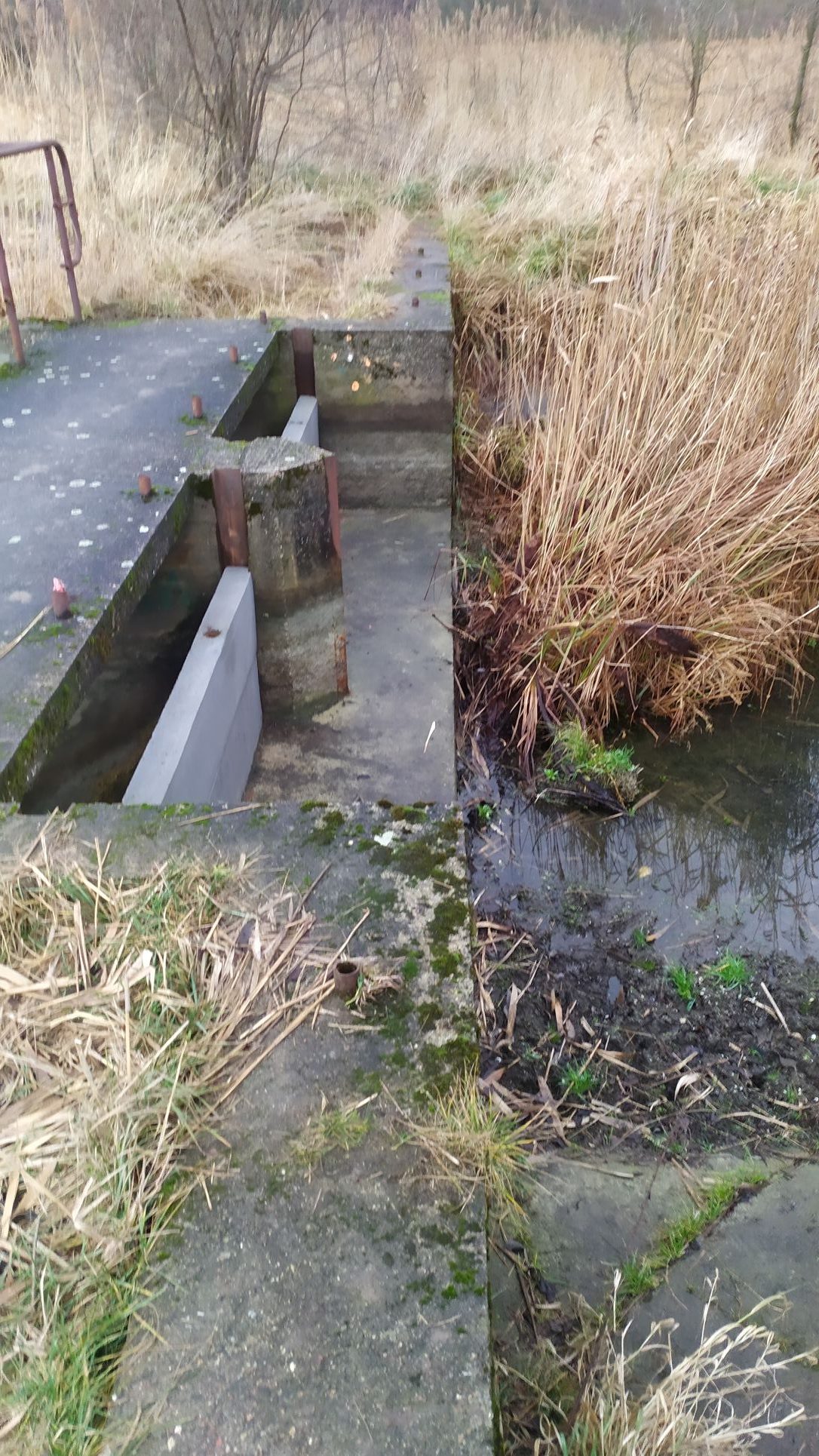 Wczoraj i dzisiaj (1-2.01.2022 r.) byłem na spacerze wokół jeziora, żeby zorientować się co mogło wpłynąć na tak fatalnie niski poziom wody. Moim pierwszym podejrzanym był jaz, który zamyka jezioro, i który miałem okazję już odwiedzić w zeszłym roku mapując przeszkody dla WWF (Barrier Tracker). Jak widać na zdjęciach, woda znajduje się poniżej progu jazu, więc nie było możliwe sztuczne obniżenie poziomu zwierciadła. Następnie poszedłem do ujścia Głównej, żeby sprawdzić czy woda wciąż dopływa do jeziora i mieć jakiś obraz sytuacji w górnej części zlewni – tutaj moje podejrzenia zostały szybko zweryfikowane przez rzeczywistość, bowiem wszystko wyglądało zupełnie normalnie, podobnie do tego co zastałem latem zeszłego roku. Także bobry, które zadomowiły się po drugiej stronie ulicy Kiszkowskiej, wypadły z listy podejrzanych. Chociaż nie wiem jakim cudem mogłyby aż tak ograniczyć dopływ…