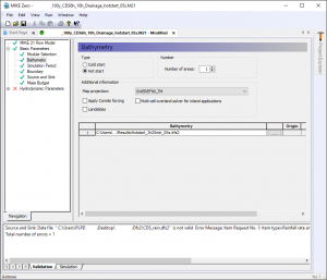 Tło: Symulacja, która liczy się od dobrego miesiąca, nagle przestała zapisywać wyniki do pliku Dfs2. Modelujemy spływ powierzchniowy powstały w wyniku deszczu nawalnego CDS (Chicago Design Storm) o 1% prawdopodobieństwie przewyższenia, czasie trwania 6h (z czego 2h to pre-rain), uwzględniamy sieć kanalizacyjną, która odbierze część deszczu oraz wykorzystujemy moduł infiltracji. Powierzchnia modelu to około 100 km2, rozdzielczość rastra 2 m. Nie chcę tracić dotychczasowych wyników, więc zamiast puszczać symulację od początku, wykorzystuję to co mamy i tworzę plik Hotstart, którego użyję do przygotowania nowego pliku m21.