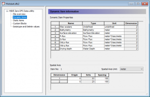 • Jeżeli będą się znajdować w nim tylko podstawowe parametry czyli batymetria (static items) oraz H, P, Q (dynamic items), to Data Type przyjmie wartość 1 (Plot Composer będzie mógł na tej podstawie stworzyć i wyświetlić inne elementy, np. U i V)