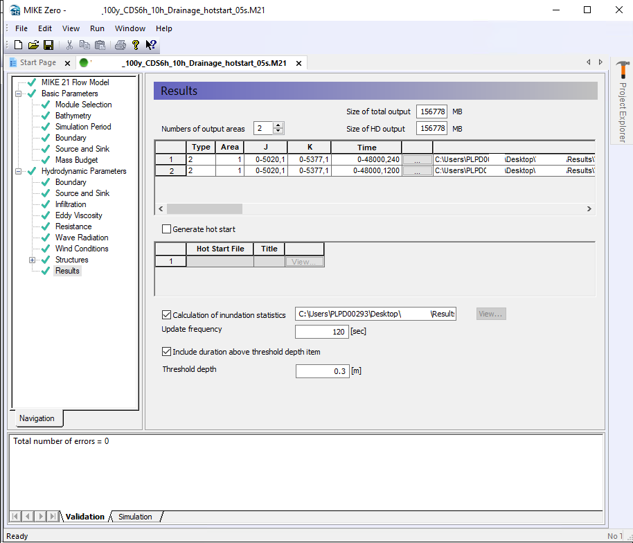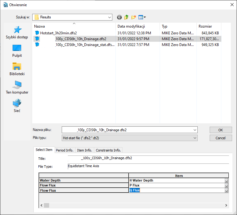 DHI nie zaleca ręcznego tworzenia plików Hotstart, jednak w niektórych sytuacjach jest to bardzo pomocne. Jeżeli wiemy, że nasza symulacja będzie kontynuowana, wówczas najlepiej pozwolić programowi stworzyć ten plik samodzielnie, wybierając odpowiednią opcję w zakładce Results.