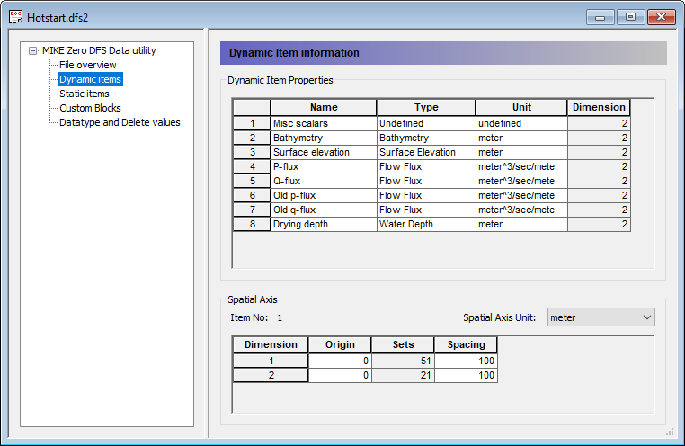 • Jeżeli plik dfs2 ma być plikiem hotstart, wtedy Data Type = 11